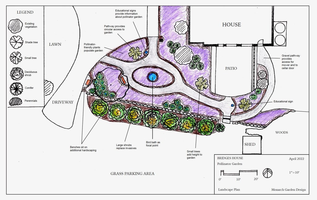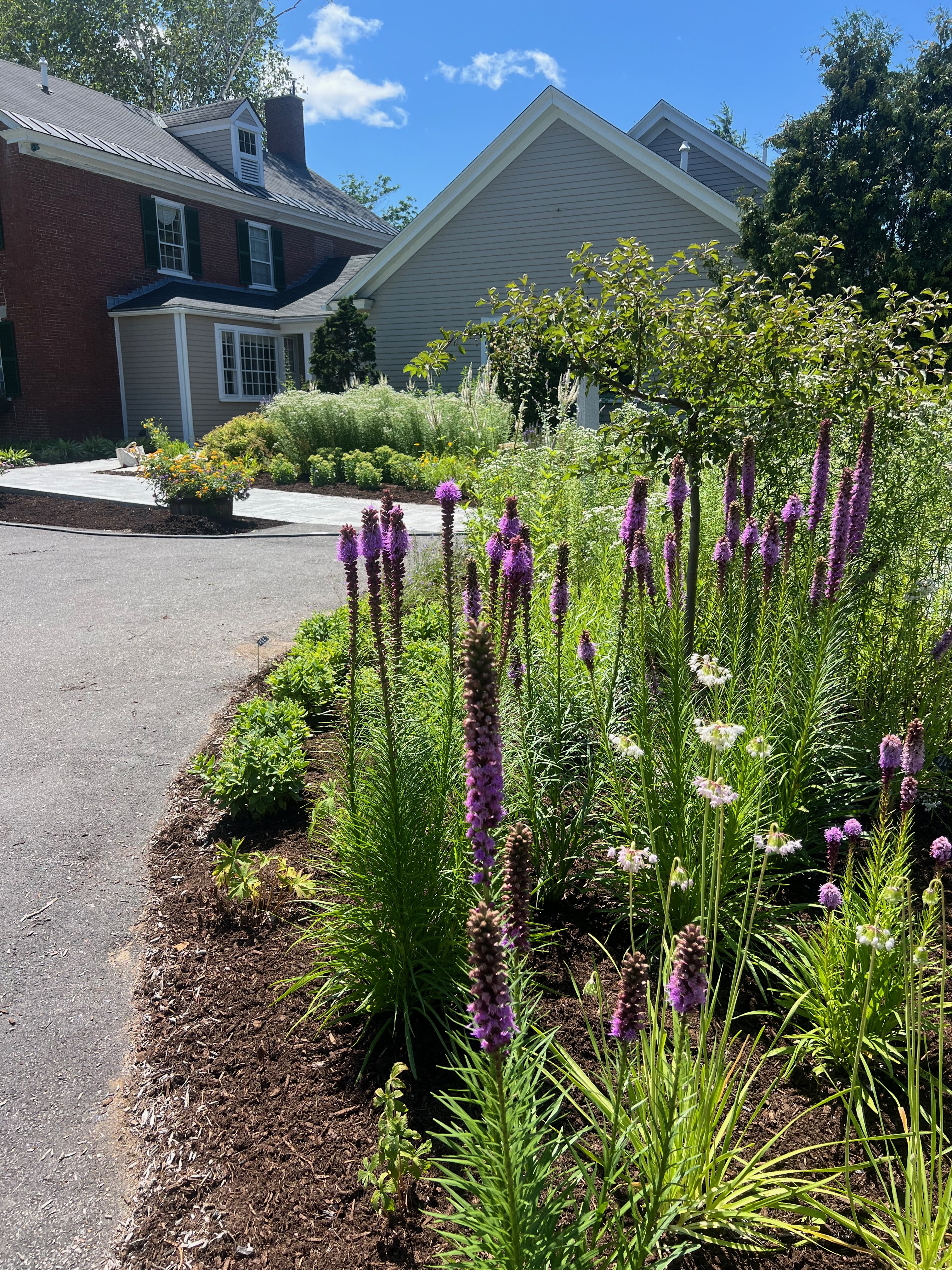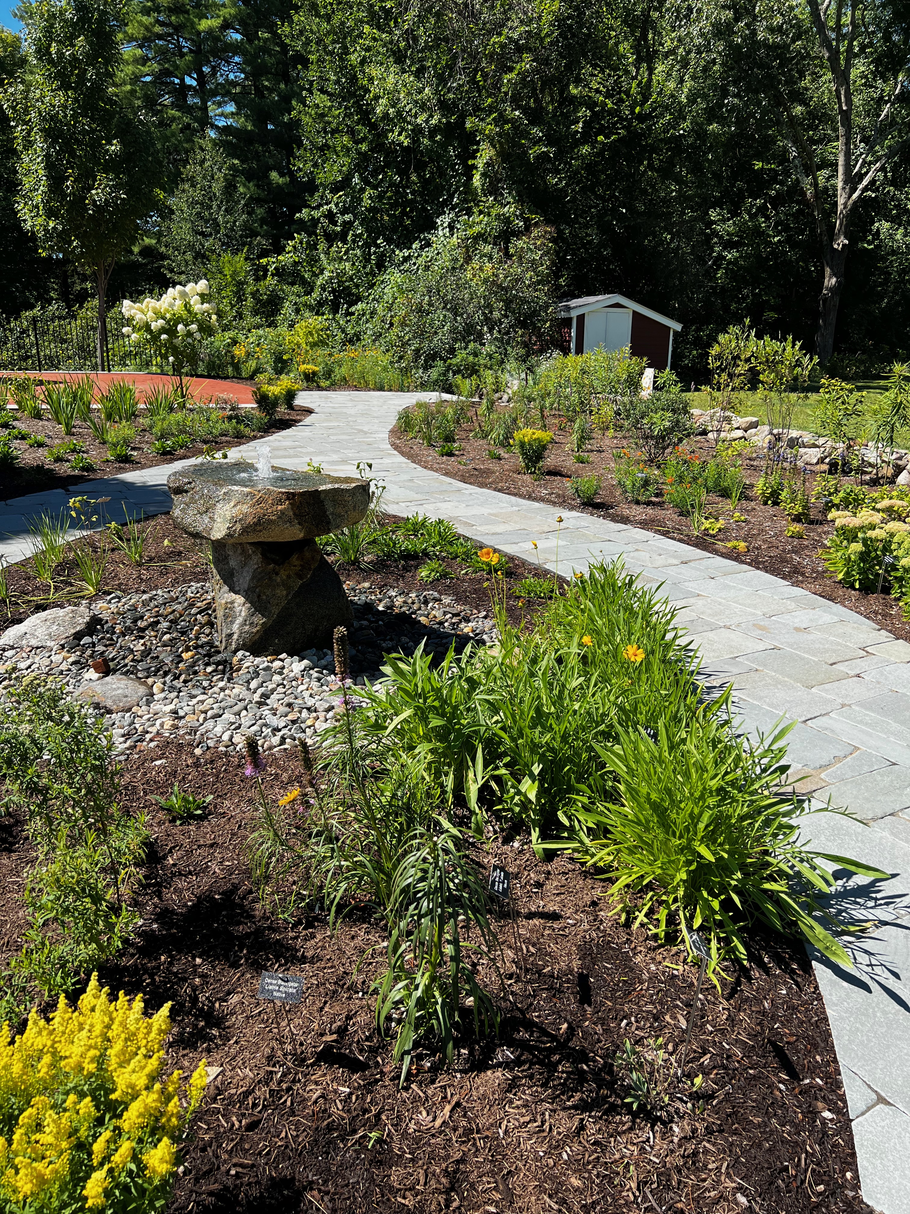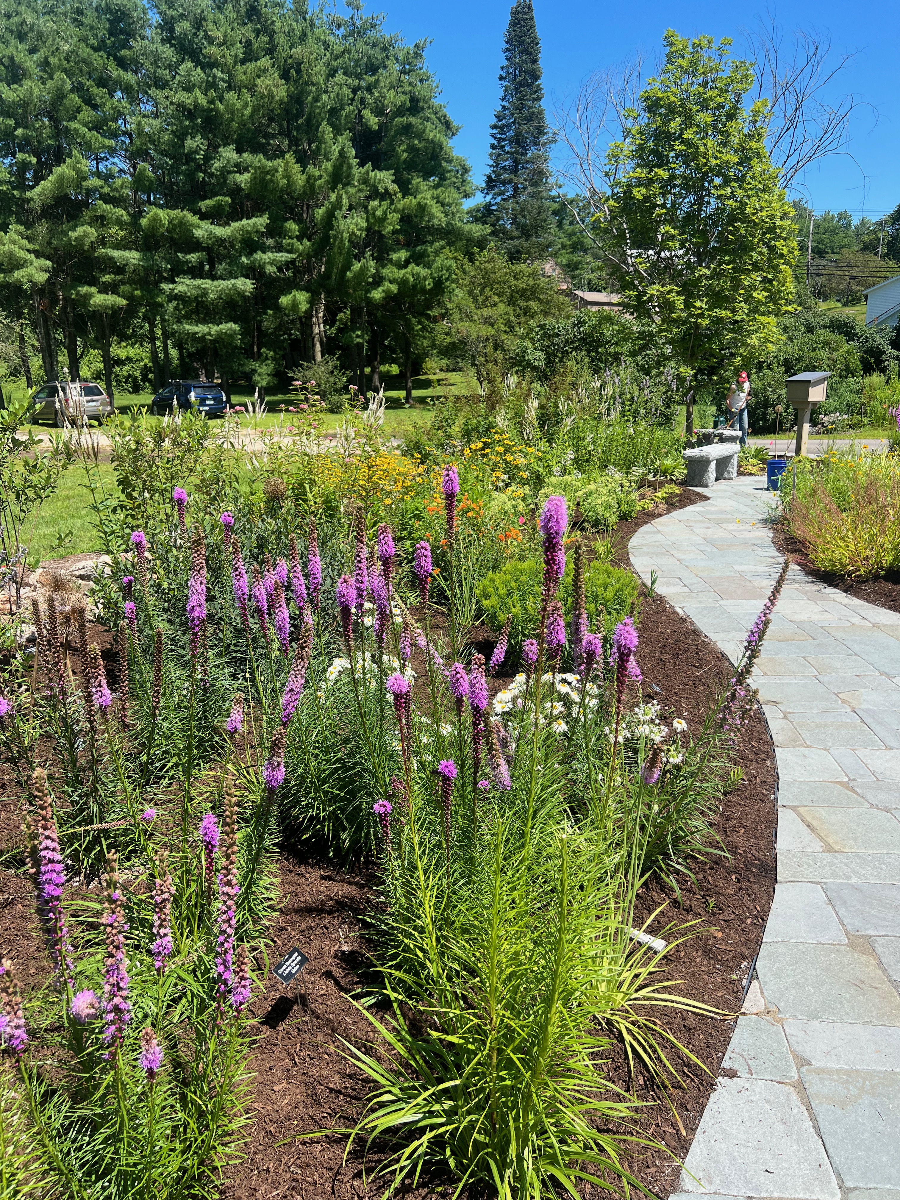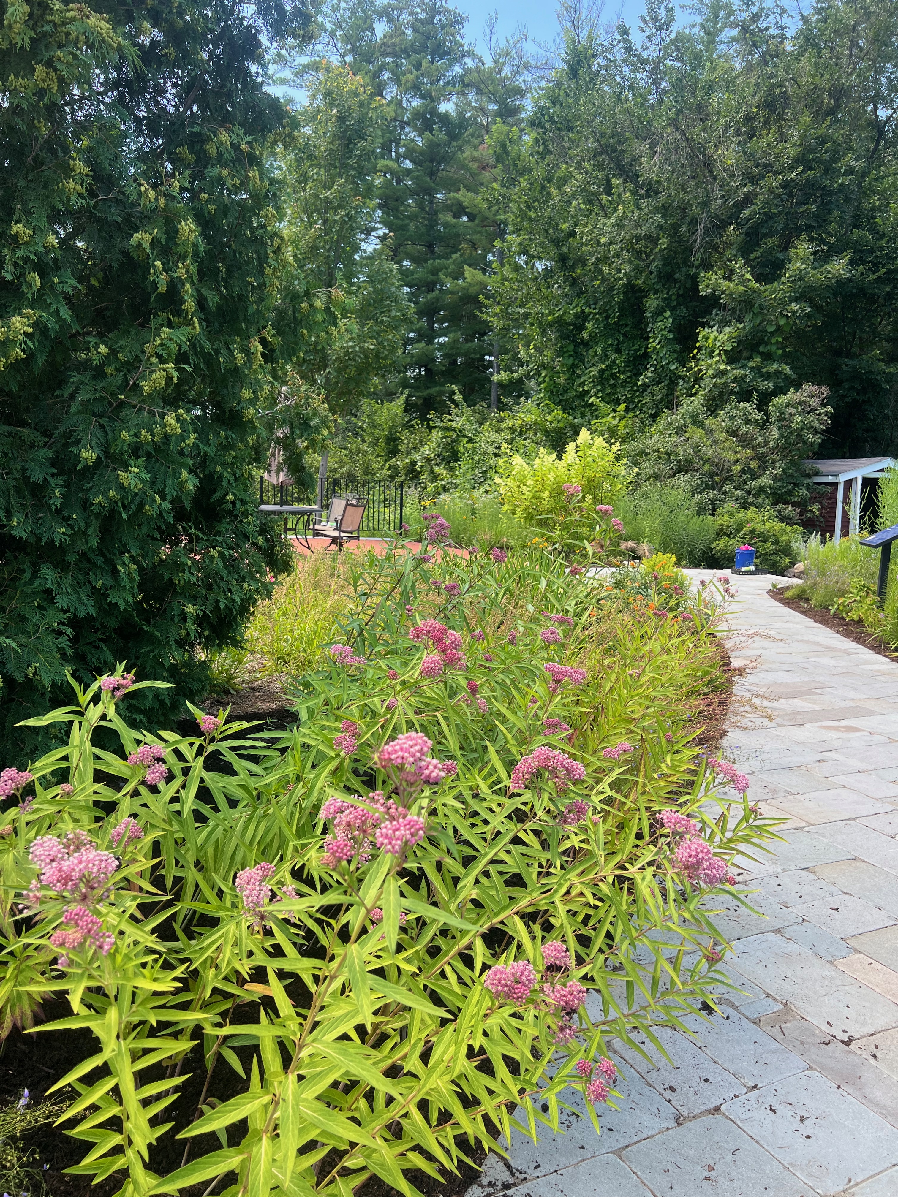 Envisioned by Valerie Sununu as a template for NH gardeners who want to take up the call of native pollinator friendly garden, Monarch was tasked with setting these plants in a beautiful hardscape design focused on circulation, education, and gathering.