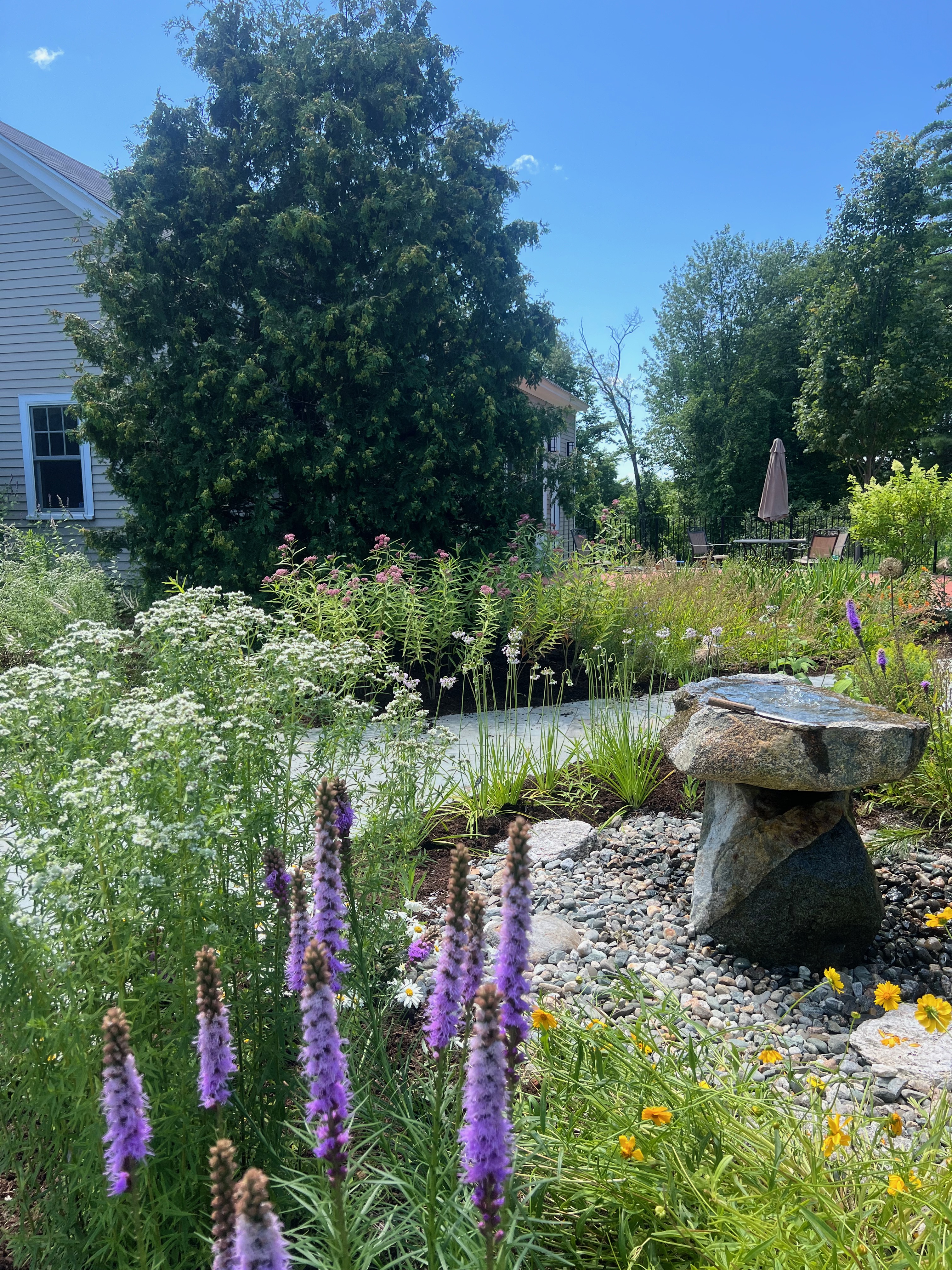 We chose a natural stone bird bath from Rock Crest Gardens in Newfield NH.